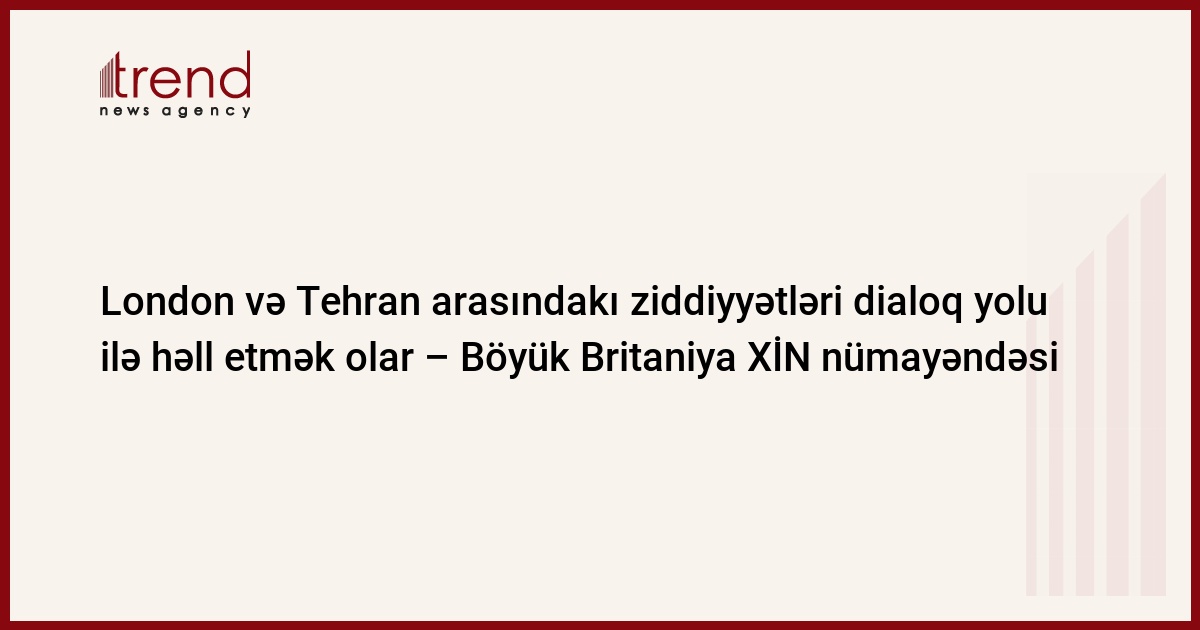 "İran Parlamentinin Milli təhlükəsizlik və xarici siyasət komissiyasının hökuməti Böyük Britaniya ilə münasibətlərə yenidən baxmağa çağırması ilk dəfə deyil. Bizim üzləşdiyimiz bütün problemləri yalnız açıq və doğru dialoq yolu ilə həll etmək mümkündür", - Böyük Britaniya XİN-in rəsmi nümayəndəsi elektron poçt vasitəsilə Trend-ə bildirib.