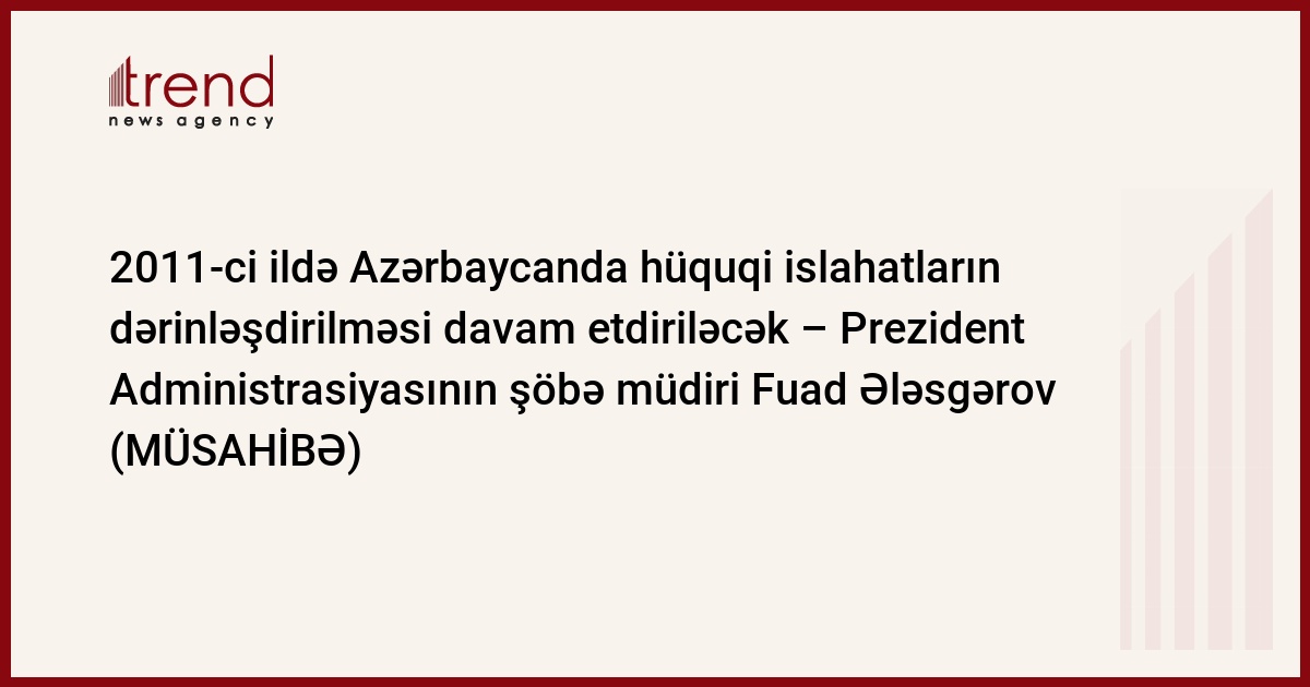 Azərbaycan Prezidenti Administrasiyasının Hüquq mühafizə orqanları ilə iş şöbəsinin müdiri Fuad Ələsgərovun 2010-cu ilin yekunlarına dair Trend-ə müsahibəsi