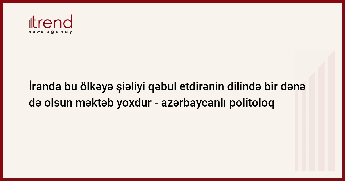 "Bu, teosofik baxımdan mümkün deyil. Ən qəribəsi də budur ki, İranın din xadimləri onları indiki məqama, indiki qazanca çatdıran şiəliyə xəyanət edirlər. O şiəlik ki, onu İranda azərbaycanlı Şah İsmayıl Xətai yayıb. Şah İsmayıl Xətainin dövründə Azərbaycan dili indiki Azərbaycan Respublikası və İran İslam Respublikasının əraziləri də daxil olmaqla daha böyük ərazidə rəsmi dövlət dili olub. Şah İsmayıl Xətai şiəliyin yayılması prosesini indiki Azərbaycan dilində aparıb. İranda bir dənə də olsun Azərbaycandilli məktəb yoxdur. İranda Azərbaycan dili əsl ayyətül-əl-allahdır. Başqa sözlə, Allah rəmzidir, nişanəsidir. Bu dili İranda Allah qoruyur ki, 400 ildən çox təzyiq altında qalmasına baxmayaraq, əhali o dili yaşadır", - politoloq bildirib.