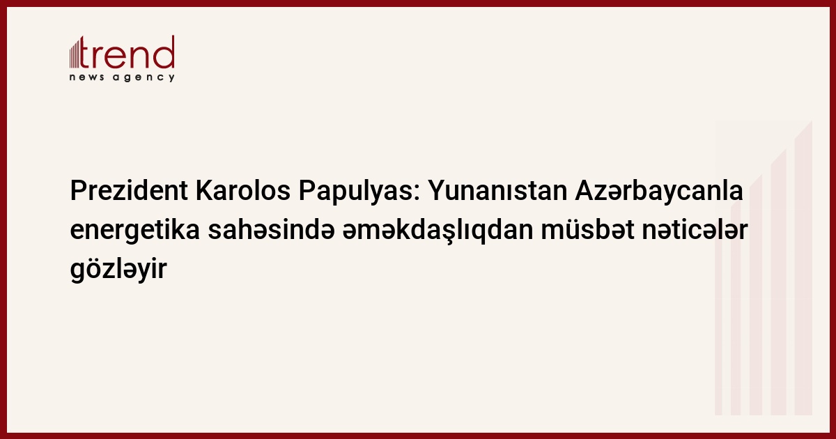 Yunanıstan və Azərbaycan arasında ikitərəfli münasibətlər inkişaf edir və biz iki ölkə arasında yüksək səviyyəli səfərlərin sayının son illərdə artmasını görməyə şadıq. Bu barədə aprelin 4-6-na Azərbaycana nəzərdə tutulan rəsmi səfəri ərəfəsində Trend-ə müsahibəsində Yunanıstan Prezidenti Karolos Papulyas deyib.