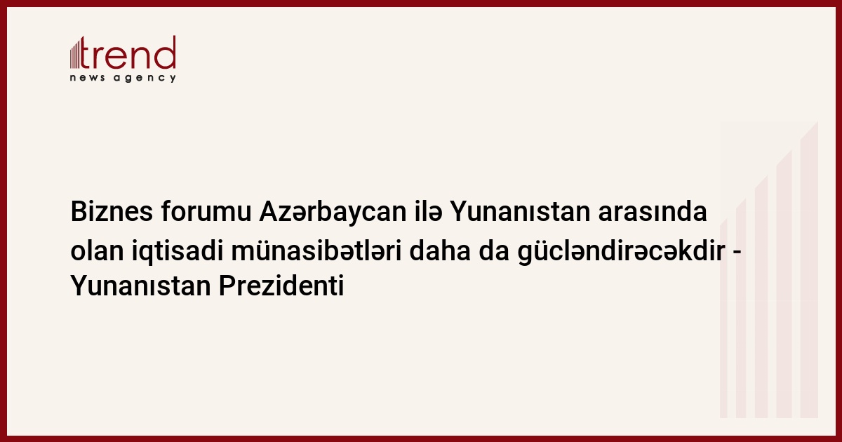 "Bu tədbir ölkələrimiz arasında ikitərəfli iqtisadi əlaqələrin yüksək səviyyədə olduğunu göstərir. Azərbaycan Qafqazda mühüm coğrafi məkanda yerləşir və xüsusilə bu regionda mühüm rol oynayır. 2009-cu ildə mən böyük məmnuniyyətlə Prezident Əliyevi Afinada keçirilmiş biznes forumu çərçivəsində salamladım və həmin vaxtdan etibarən yunan şirkətləri, yunan biznes adamları açılan bu imkanlardan istifadə etmək qərarına gəldilər. Onlar öz azərbaycanlı həmkarları ilə əlaqə yaratdılar. Biznes forumu uğurla keçdi və bu, bizim ticari münasibətlərimizə də böyük təkan verdi. Hesab edirəm ki, ikitərəfli iqtisadi və ticari münasibətlərimiz baxımından görüləcək işlər hələ çoxdur. Biz çalışmalıyıq ki, bu əlaqələri daha da gücləndirək. Xüsusən də Yunanıstan iqtisadiyyatının ixraca işləyən sektorlarının, yəni ərzaq məhsullarının, tikinti materiallarının, kosmetika və əczaçılıq məhsullarının ixracını daha da təşviq etməklə əməkdaşlığımızı quraq", - Yunanıstan Prezidenti bildirib.