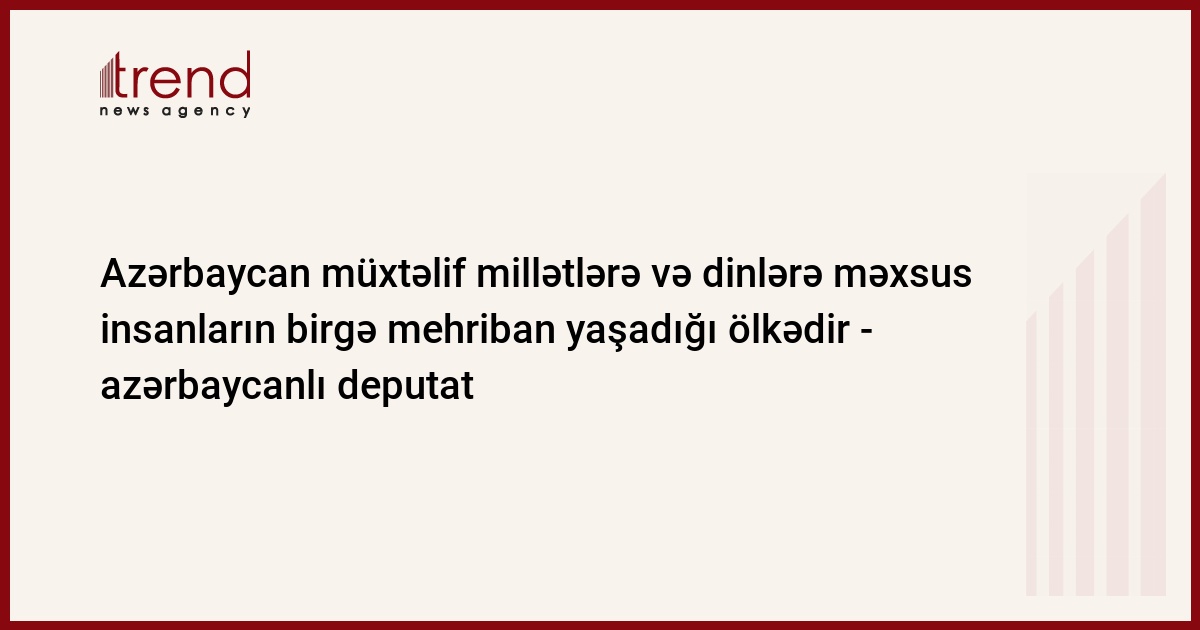 Millət vəkili Azərbaycanın müxtəlif millətlərə və dinlərə məxsus insanların birgə mehriban yaşadığı bir ölkə olduğunu vurğulayıb.