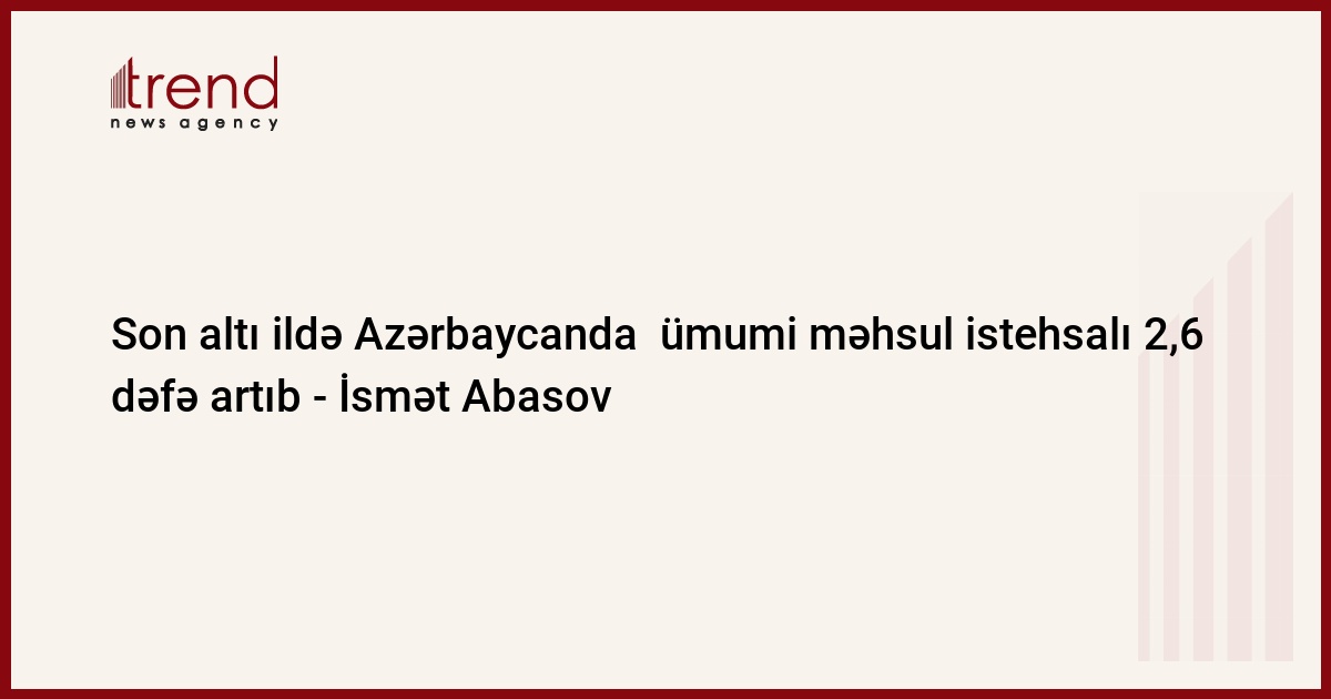 Son illər həyata keçirilmiş məqsədyönlü tədbirlər kənd təsərrüfatı və ərzaq məhsulları istehsalının dinamik inkişafına təkan vermiş, dövlətimizin başçısının gündəlik diqqət və qayğısının nəticəsi olaraq kənd təsərrüfatında ümumi məhsul istehsalı 2010-cu ildə 2004-cü ilə nisbətən 2,6 dəfə, o cümlədən bitkiçilikdə 2,3 dəfə, heyvandarlıqda 3,1 dəfə artmışdır, bunu mayın 6-da Ağcabədidə Prezident İlham Əliyevin sədrliyi ilə Qarabağ iqtisadi zonasında kənd təsərrüfatı sahəsində sahibkarlığın inkişafı məsələlərinə həsr olunmuş müşavirədə çıxışı zamanı kənd təsərrüfatı naziri İsmət Abasov deyib.