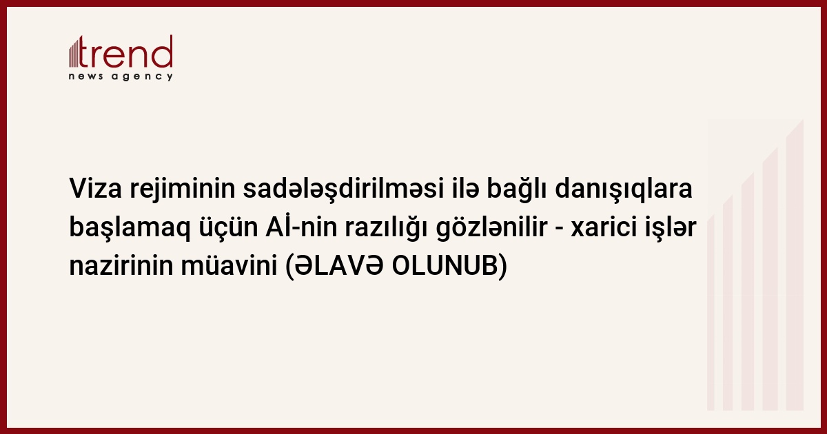 2011-ci ilin ikinci yarısında Aropa İttifaqının viza rejiminin sadələşdirilməsi, readmissiya məsələləri ilə bağlı Azərbaycanla danışıqlara başlamaq üçün razılıq verəcəyi gözlənilir. Trend-in məlumatına görə, bunu çərşənbə günü jurnalistlərə Azərbaycan xarici işlər nazirinin müavini Mahmud Məmmədquliyev bildirib.
