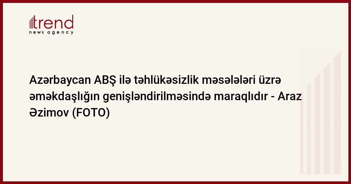 Azərbaycan ABŞ ilə təhlükəsizlik məsələləri üzrə əməkdaşlığın genişləndirilməsində maraqlıdır. Trend-in məlumatına görə, bu barədə Azərbaycan xarici işlər nazirinin müavini Araz Əzimov iki ölkə arasında təhlükəsizlik məsələləri üzrə növbəti dialoqun yekunları ilə bağlı keçirilən mətbuat konfransında bildirib.