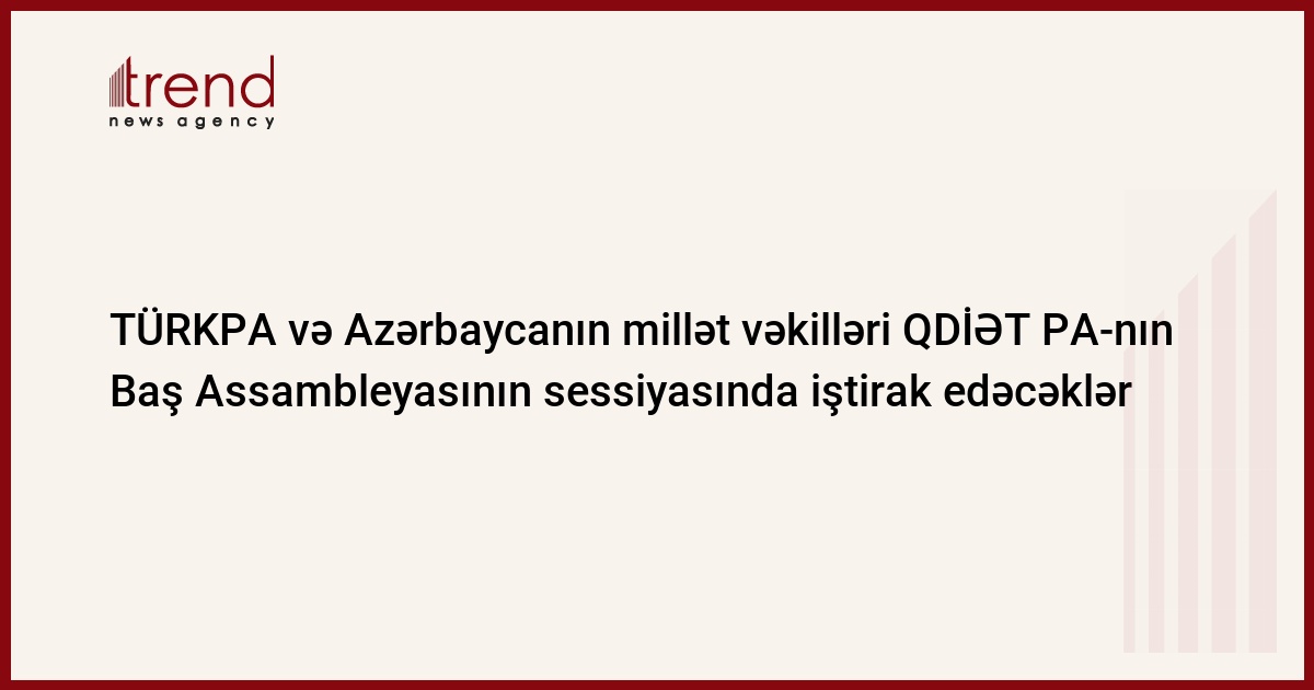 TÜRKPA və Azərbaycanın deputatları Qara Dəniz İqtisadi Əməkdaşlıq Təşkilatı (QDİƏT) Parlament Assambleyasının Baş Assambleyasının 37-ci plenar sessiyasında iştirak edəcəklər. Trend-in məlumatına görə, bu barədə çərşənbə günü Milli Məclisdən bildirilib.