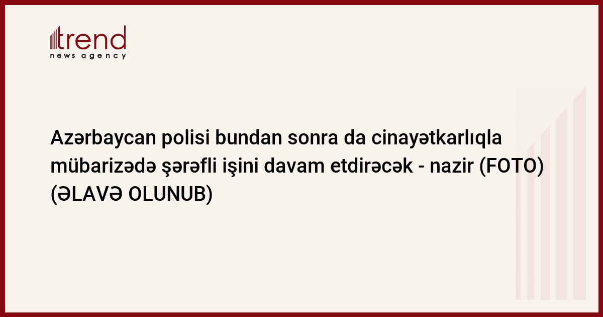 Nazir polisin xalqın əmin-amanlığının keşiyində bundan sonra da ayıq-sayıq dayanacağına ümidvar olduğunu bildirib.