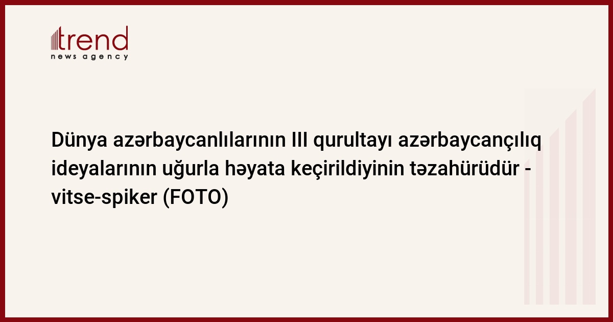 Dünya azərbaycanlılarının III qurultayı ümummilli lider Heydər Əliyevin azərbaycançılıq ideyalarının uğurla həyata keçirildiyinin bir daha təzahürüdür. Trend-in məlumatına görə, bunu Milli Məclisin birinci vitse-spikeri Ziyafət Əsgərov Dünya azərbaycanlılarının III qurultayında çıxışında bildirib.