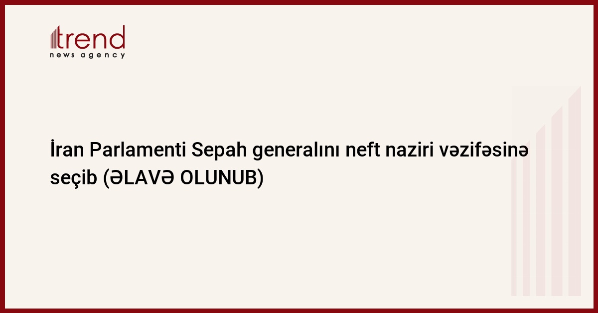 İran Paralmenti general Rüstəm Qasıminin neft naziri vəzifəsinə namizdəliyinin lehinə səs verib. Trend-in məlumatına görə, bu barədə FARS informasiya agentliyi xəbər yayıb.