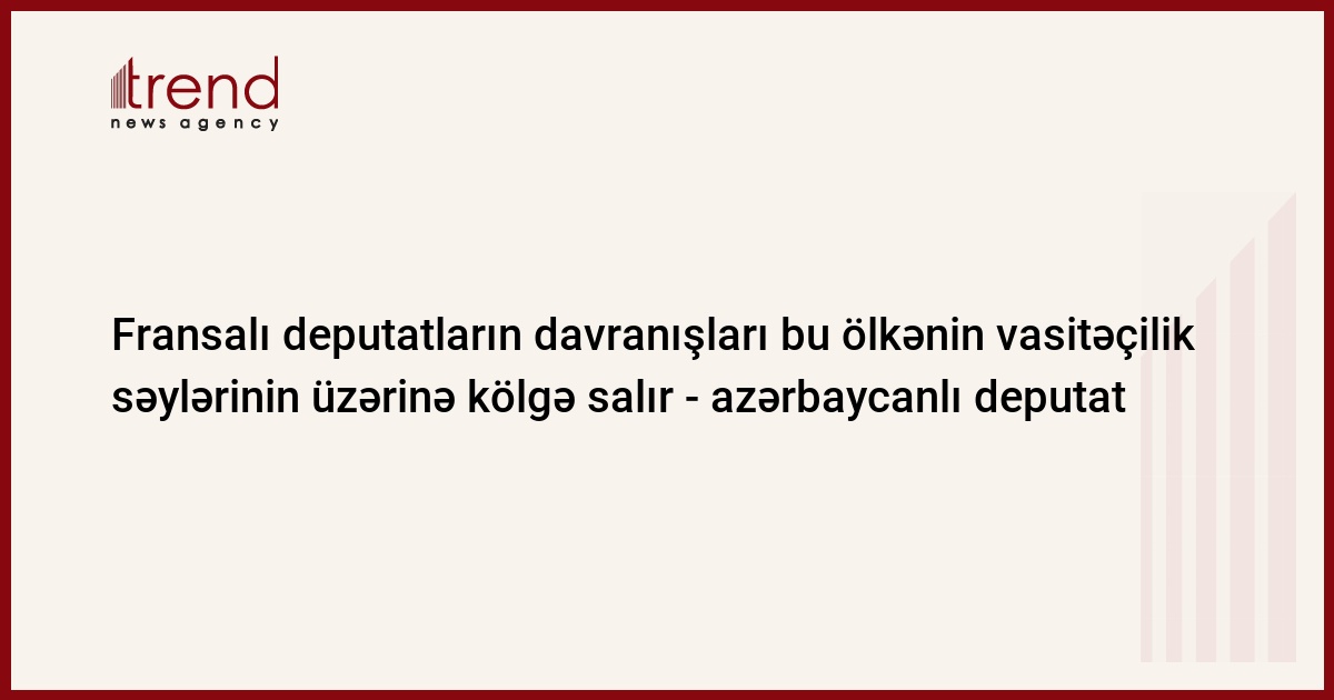 "Eyni zamanda, Fransa ATƏT-in Minsk qrupunun həmsədrlərindən biridir. Həmsədrlər, vasitəçilər tərəfsiz olmalıdır. Onlara verilən mandat çərçivəsində hərəkət etməlidirlər. Fransalı deputatların Azərbaycanın Dağlıq Qarabağ regionuna səfəri bu ölkənin vasitəçilik səylərinin üzərinə kölgə salır", - millət vəkili vurğulayıb.