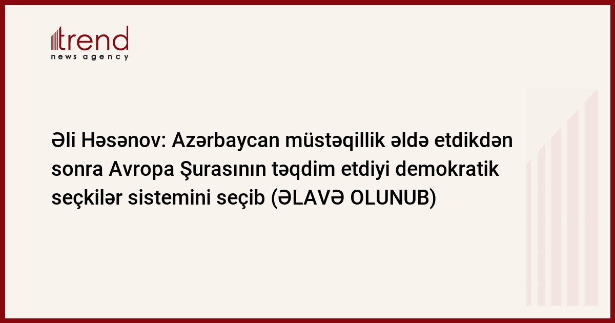Azərbaycan müstəqillik əldə etdikdən sonra Avropa Şurasının təqdim etdiyi demokratik seçkilər sistemini seçib. Trend-in məlumatına görə, bunu çərşənbə axşamı Mərkəzi Seçki