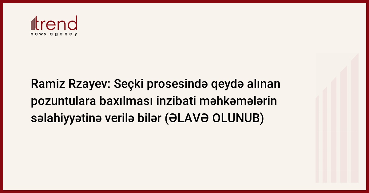Ali Məkhəmənin sədri Ramiz Rzayev Trend-ə açıqlamasında bildirib ki, seçki prosesində qeydə alınan pozuntuların inzibati məhkəmələrin səlahiyyətinə aid edilməsi məsələsi ilə bağlı qanunvericilikdə dəyişiklik edilməsi üçün Milli Məclisə müraciət edilib. Rzayev bildirib ki, Mülki Məcəllədəki həmin bu prosesi nizama salan müddəalar həmin məcəllədən çıxarılaraq "İnzibati icraat haqqında" qanuna əlavə ediləcək.