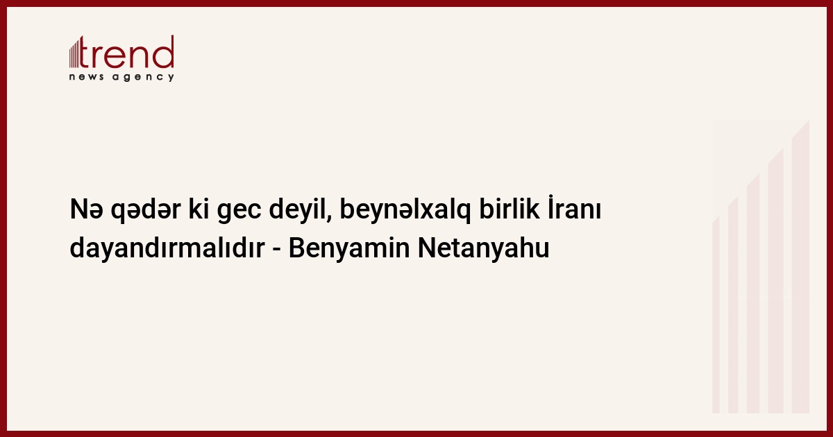 Nə qədər ki çox gec deyil, beynəlxalq birlik İranı dayandırmalıdır. Bunu İsrailin Baş naziri Benyamin Netanyahu cümə günü BMT Baş Assambleyasında çıxışı zamanı deyib. Bu barədə Trend-in xüsusi müxbiri xəbər verir.