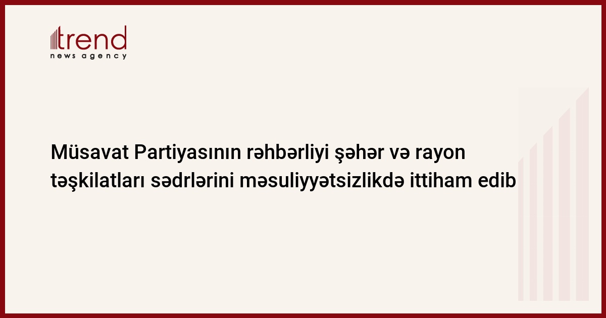 "Bəzi şəhər və rayon təşkilatlarının sədrləri qurultaya hazırlıq konfranslarının keçirilməsi məsələsinə məsuliyyətsiz yanaşırlar", Trend-in məlumatına görə, bu barədə Müsavat Partiyasının bazar günü keçirilən Məclis toplantısında məruzə edərkən Partiyanın başqan müavini Tofiq Yaqublu deyib.