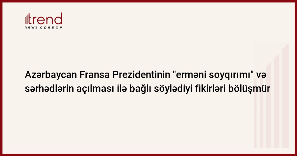 Azərbaycan Fransa Prezidenti Nikola Sarkozinin "erməni soyqırımı" və Ermənistan-Türkiyə sərhədlərinin açılması ilə bağlı söylədiyi fikirlərlə razı deyil. Trend-in məlumatına görə, bunu cümə günü jurnalistlərə açıqlamasında Prezident Administrasiyasının İctimai-siyasi məsələlər şöbəsinin müdiri Əli Həsənov deyib.