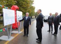 Dövlətimizin başçısı yolun rəmzi açılışını bildirən lenti kəsdi.