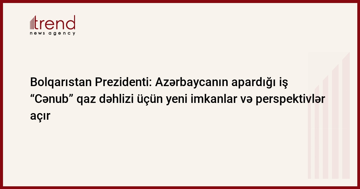 "Bu, həmçinin Azərbaycan ilə Avropa İttifaqı arasındakı münasibətlərə də aiddir. Son illər ərzində Azərbaycanın apardığı iş "Cənub" qaz dəhlizi üçün yeni imkanlar və perspektivlər açır. Bolqarıstan isə öz növbəsində özünəməxsus mövqe tutur və bu münasibətlər çərçivəsində müsbət amil rolunu oynayır. Əslində biz çalışırıq ki, hətta əlaqələrimizi Azərbaycan ilə Avropa İttifaqı arasında münasibətlərdən də daha çox inkişaf etdirək. Bu münasibətlərin uzun tarixi vardır. Bu sahədə biz gərgin iş aparırıq. Mətbuat konfransları zamanı biz bir milyard kubmetr qaz həcmi haqqında razılaşmamızı xatırlayırıq. Biz, eyni zamanda, istəyirik ki, bu layihə həyata keçirilsin - Bolqarıstan və Yunanıstan arasında bağlayıcı layihə baş tutsun. Danışıqlar zamanı biz qeyd etdik ki, Azərbaycan Dövlət Neft Şirkəti kimi iri şirkət Bolqarıstanın ərazisində bu layihədən sonra fəaliyyət göstərə biləcəkdir.