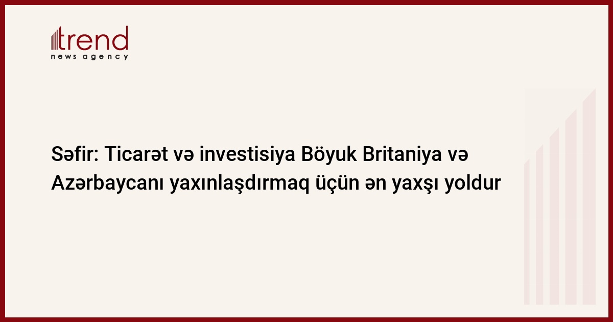 Böyük Britaniyanın Azərbaycandakı yeni səfiri Piter Beytman hesab edir ki, ticarət və investisiya ölkələri və xalqları yaxınlaşdırmaq üçün ən yaxşı yoldur.
