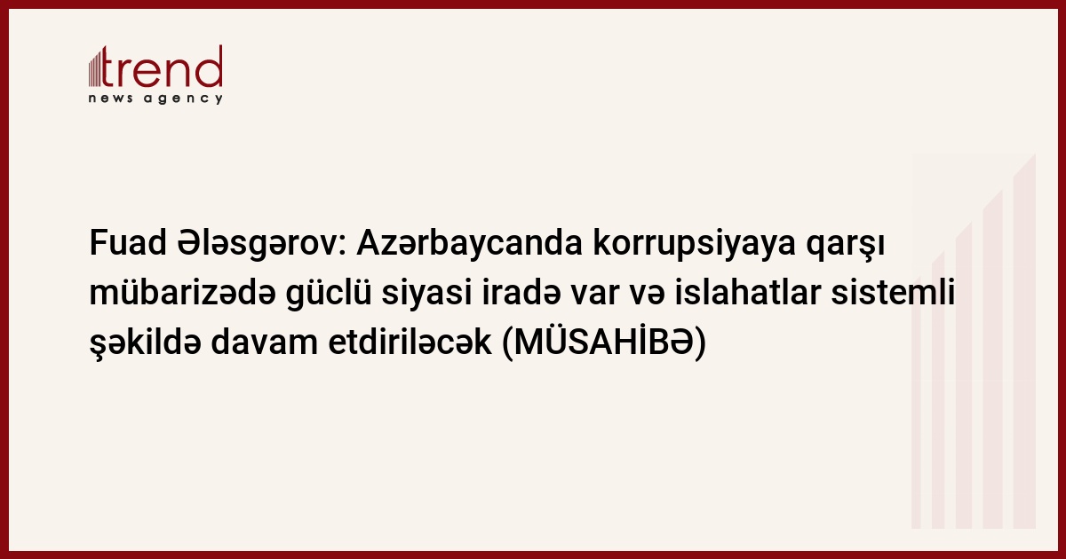 Azərbaycan Respublikası Prezidentinin Administrasiyasının Hüquq mühafizə orqanları ilə iş şöbəsinin müdiri, Korrupsiyaya qarşı mübarizə üzrə Komissiyanın üzvü Fuad Ələsgərovun müsahibəsi