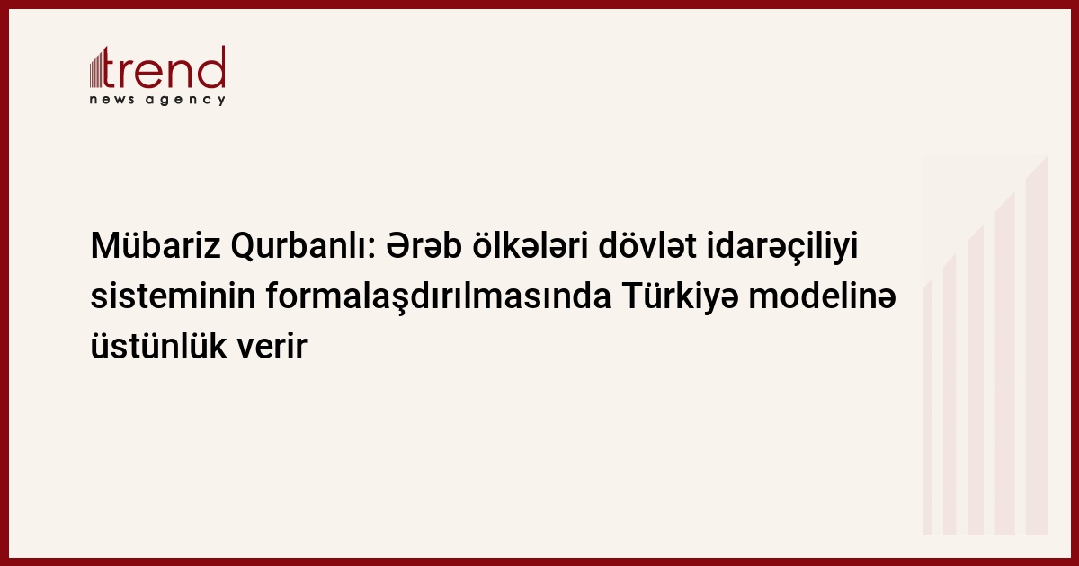 Ərəb ölkələri dövlət idarəçiliyi sisteminin formalaşdırılmasında Türkiyə modelinə üstünlük verir. Trend-in məlumatına görə, bu fikirləri hakim Yeni Azərbaycan Partiyasının (YAP) saytına açıqlamasında partiyanın icra katibinin müavini, deputat Mübariz Qurbanlı deyib.