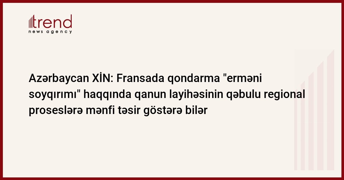 Fransa Milli Assambleyası qondarma "erməni soyqırımı"nın inkarına görə cinayət məsuliyyətini nəzərdə tutan qanun layihəsini qəbul edib.