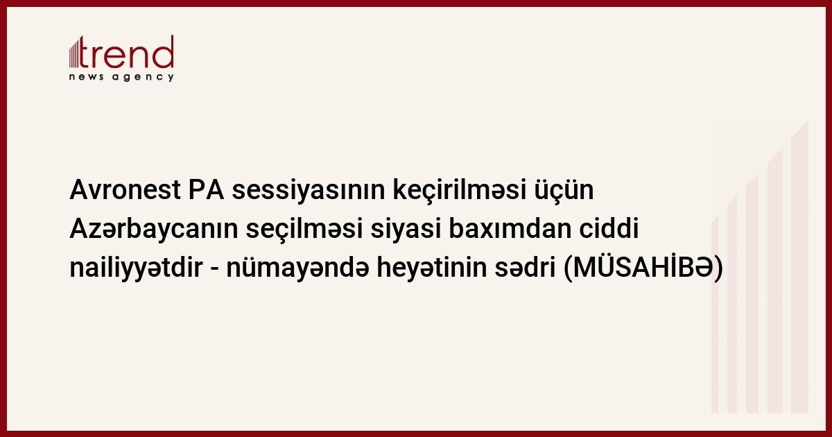 Azərbaycanın Avronest PA-da nümayəndə heyətinin sədri Elxan Süleymanovun Trend-ə müsahibəsi