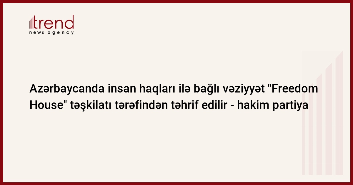 Azərbaycanda insan haqları ilə bağlı vəziyyət bir neçə ildir ki, "Freedom House" təşkilatı tərəfindən hazırlanan hesabatlarda təhrif edilir. Bunu Trend-ə müsahibəsində hakim Yeni Azərbaycan Partiyasının Sədr müavini, icra katibi Əli Əhmədov deyib.