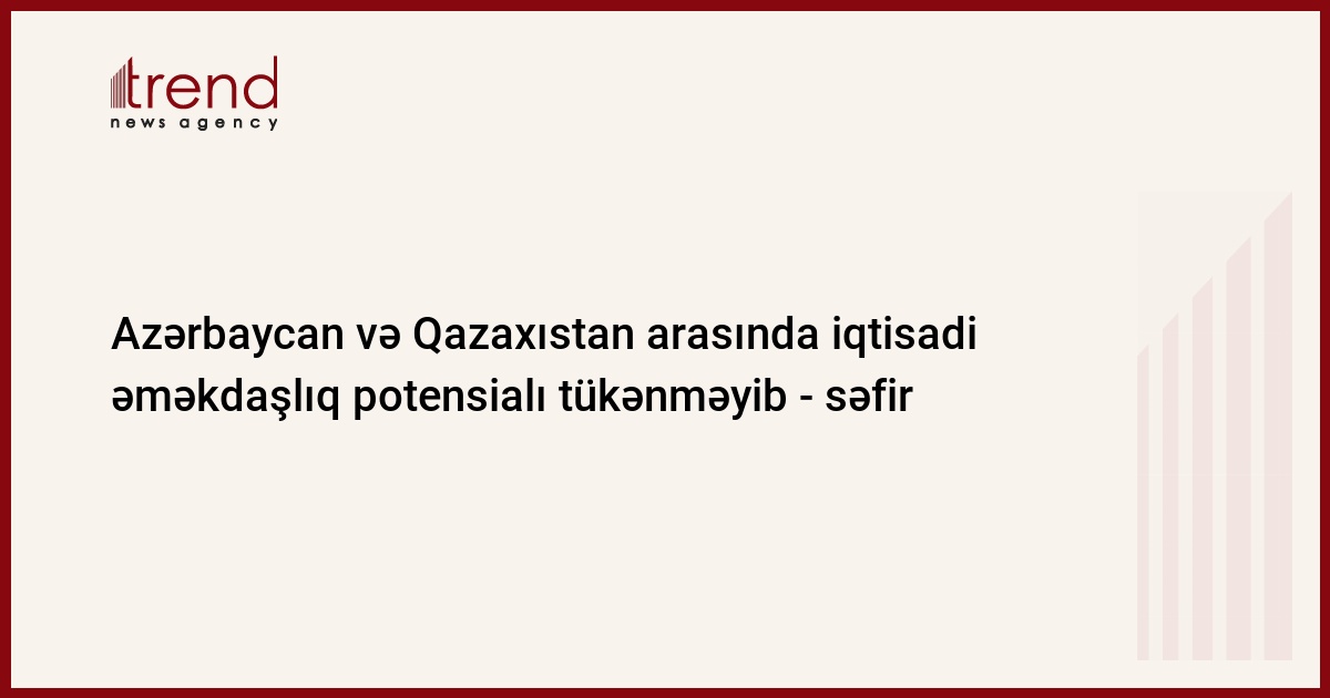 Azərbaycan və Qazaxıstan arasında iqtisadi əməkdaşlıq potensialı tükənməyib. Bu barədə bazar ertəsi Trend-ə Azərbaycanın Qazaxıstandakı fövqəladə və səlahiyyətli səfiri Zakir Həşimov bildirib.