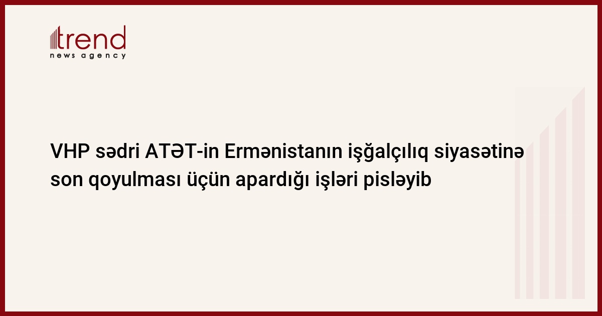 VHP sədri ATƏT-in Bakı ofisinin fəaliyyətini dəyərləndirməklə yanaşı, Ermənistanın işğalçılıq siyasətinə son qoyulması üçün aparılan işləri pisləyib və Minsk qrupunun öz missiyasını başa vurmadan ölü təşkilata çevrildiyini qeyd edib. Xüsusilə, Senatın qəbul etdiyi məlum qanundan sonra Fransanın ATƏT-in Minsk qrupunda təmsilçilik baxımından mənəvi və hüquqi haqqını itirdiyi bildirilib.
