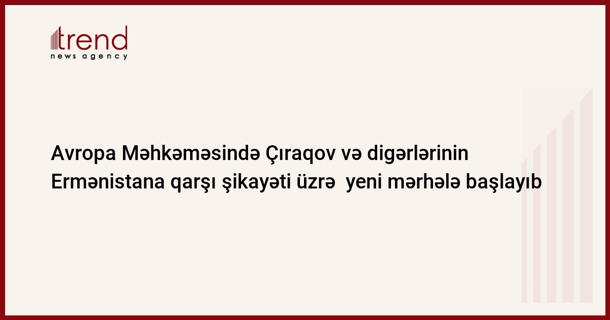 Avropa Məhkəməsində Çıraqov və digərlərinin Ermənistana qarşı, həmçinin Sarkisyanın Azərbaycana qarşı işləri üzrə yeni mərhələ başlayıb. Bu barədə Trend-ə çərşənbə günü Azərbaycan Prezidenti Administrasiyasının Hüquq mühafizə orqanları ilə iş şöbəsinin İnsan hüquqlarının müdafiəsi məsələləri sektorunun müdiri, Azərbaycanın Avropa Məhkəməsi yanında səlahiyyətli nümayəndəsi Çingiz Əsgərov bildirib.