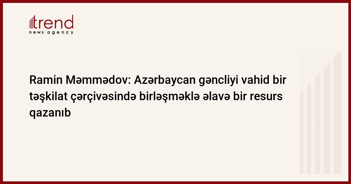 Qeyd edək ki, martın 12-də Bakıda Dünya Azərbaycanlı Gənclər Birliyinin təsis qurultayı keçirilib. Qurultayda Ramin Məmmədov Birliyin sədri seçilib. Həmçinin qurultay zamanı Birliyin qətnaməsi, nizamnaməsi və digər sənədlər qəbul olunub.