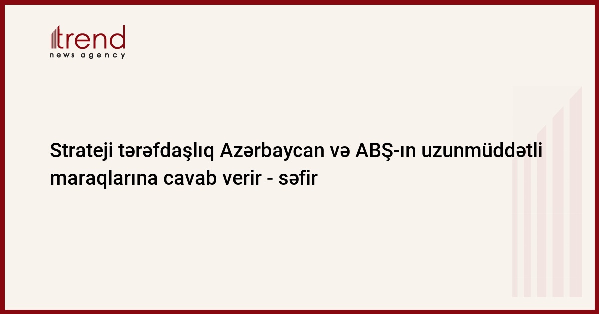Azərbaycan və ABŞ arasında ikitərəfli strateji tərəfdaşlığın möhkəmlənməsi hər iki ölkənin uzunmüddətli milli maraqlarına cavab verir. Bu barədə bazar ertəsi Azərbaycanın ABŞ-dakı səfiri Elin Süleymanov Azərbaycan və ABŞ arasında diplomatik münasibətlərin qurulmasının 20 illiyi ilə bağlı Trend-ə müsahibəsində bildirib.