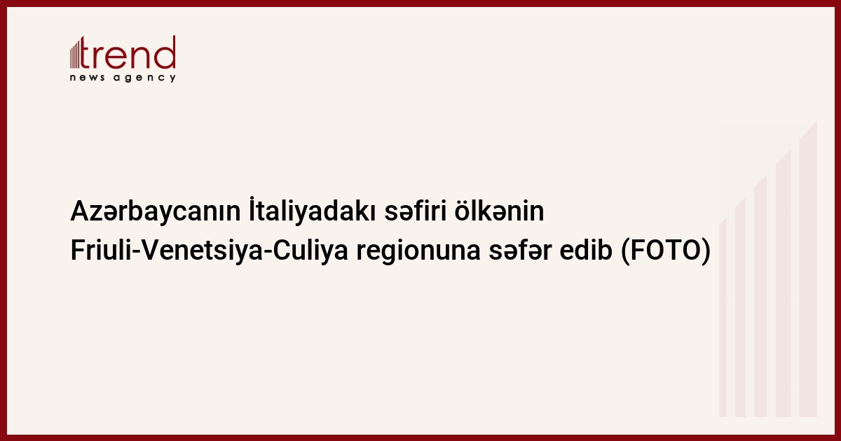 Martın 16-da Azərbaycanın İtaliyadakı səfiri Vaqif Sadıqov İtaliyanın şimal-şərqində yerləşən, iqtisadi potensialına və maddi rifah səviyyəsinə görə ölkənin ən qabaqcıl regionlardan biri olan Friuli-Venetsiya-Culiya regionunun Udine və Pordenone şəhərlərində işgüzar səfərdə olmuşdur.