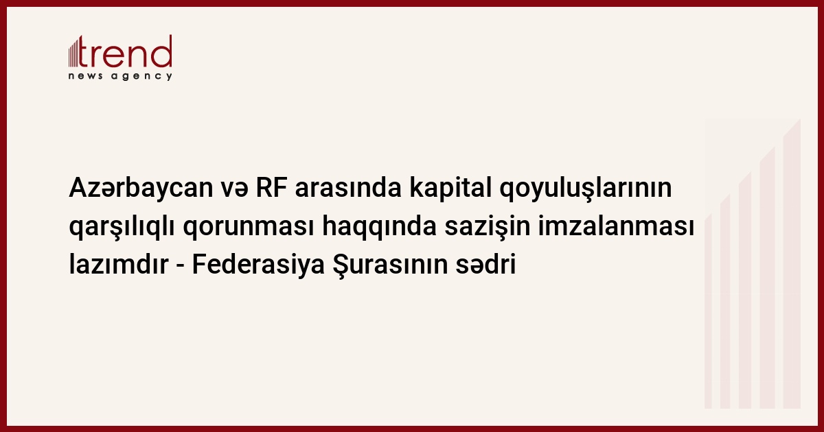 Azərbaycan və Rusiya arasında kapital qoyuluşların qarşılıqlı qorunması haqqında sazişin imzalanmasının vaxtı çatıb. Rusiya Federasiya Şurasının sədri Valentina Matvienko belə hesab edir.