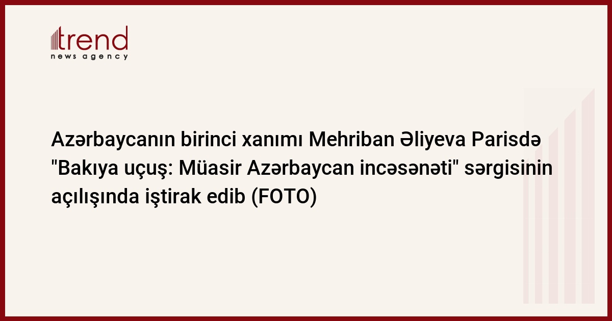 Parisdə Heydər Əliyev Fondunun və "Baku" jurnalının ingilisdilli versiyasının dəstəyi və təşkilatçılığı ilə "Bakıya uçuş: Müasir Azərbaycan incəsənəti" mövzusunda sərginin açılışı olmuşdur. Məlumatı AzərTAc Dövlət İnformasiya Agentliyi yayıb.