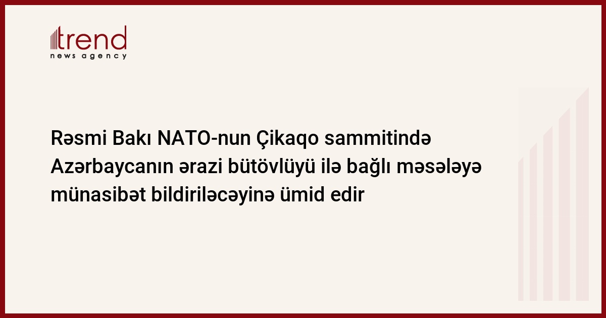 Rəsmi Bakı NATO-nun Çikaqo sammitində Azərbaycanın ərazi bütövlüyü ilə bağlı məsələyə münasibət bildiriləcəyinə ümid edir.