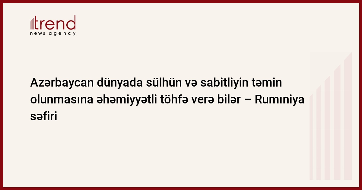 NATO-nun tərəfdaşı olan ölkə kimi Azərbaycan dünyada sülhün və sabitliyin təmin olunmasında və alyansın Çikaqoda keçiriləcək gələcək sammitinin müəyyən edəcəyi tapşırıqların həyata keçirilməsində daha mühüm rol oynaya bilər. Trend-in məlumatına görə, Rumıniyanın Azərbaycandakı səfiri, Azərbaycanla NATO arasında əməkdaşlığı əlaqələndirən Daniel Kristian Çobanu belə hesab edir.
