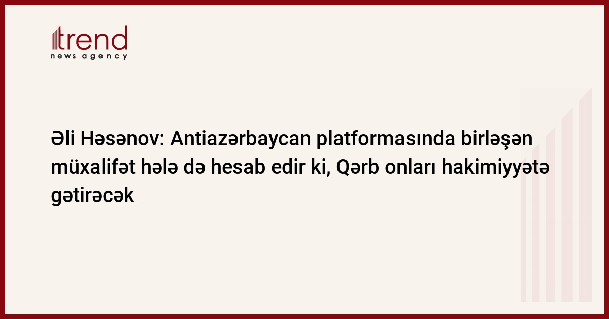 Antiazərbaycan platformasında birləşən müxalifət hələ də hesab edir ki, Qərbdən gəlib onları hakimiyyətə gətirəcəklər. Trend-in məlumatına görə, bu barədə cümə axşamı Azərbaycan Prezidenti yanında Qeyri-Hökumət Təşkilatlarına Dövlət Dəstəyi Şurasının "Vətəndaş cəmiyyətinin inkişafında QHT-lərin rolu" mövzusunda təşkil etdiyi konfransda Azərbaycan Prezidenti Administrasiyasının İctimai-siyasi məsələlər şöbəsinin müdiri Əli Həsənov bildirib.