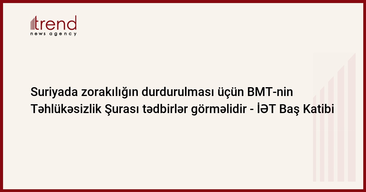 İslam Əməkdaşlıq Təşkilatı (İƏT) Baş Katibi Ekmələddin İhsanoğlu Suriyada zorakılğın dayandırılması üçün BMT-nin Təhlükəsizlik Şurasını lazımı tədbirlər görməyə çağırıb. Bu haqda Trend - ə İƏT- dən daxil olan məlumatda deyilir.