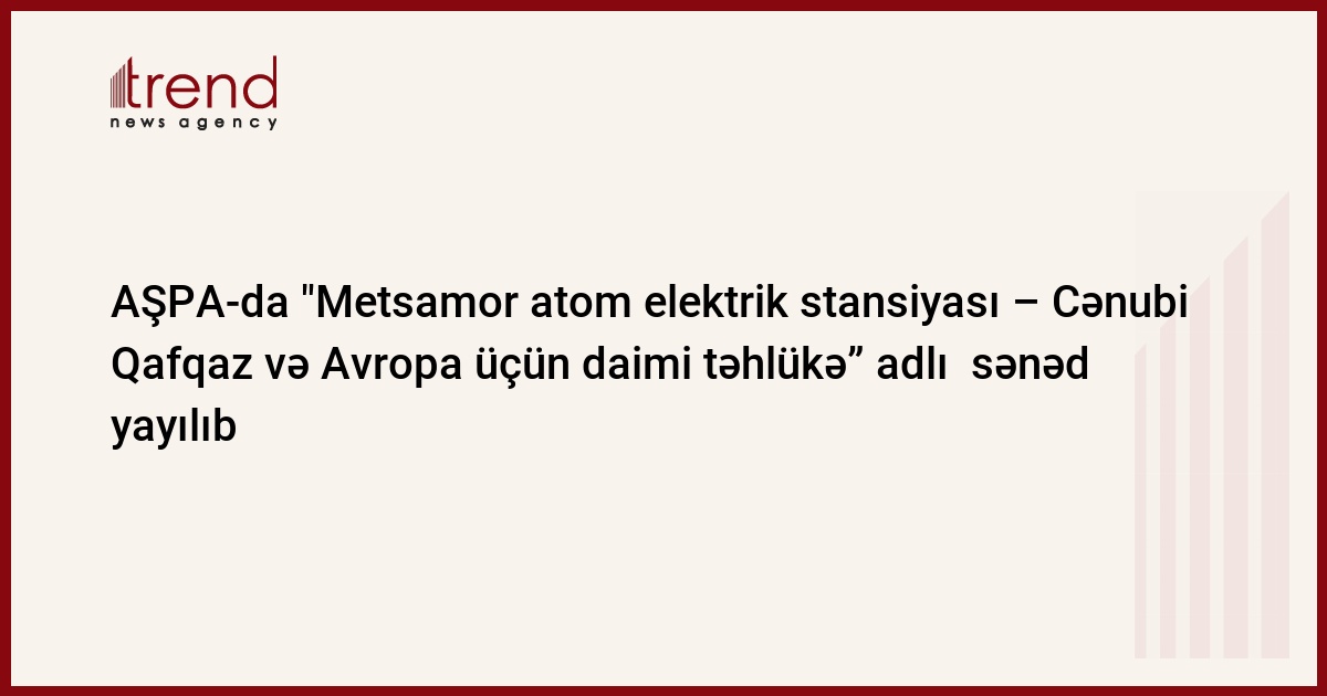 "Ermənistanda yerləşən "Metsamor" stansiyası Cənubi Qafqaz və Avropa regionu üçün ən böyük təhlükələrdən biridir. Seysmoloji cəhətdən fəal zonada yerləşən "Metsamor" AES-in fəaliyyətinin dərhal dayandırılması ilə bağlı məsələ dəfələrlə Parlament Assambleyasında qaldırılmışdır. Məsələ burasındadır ki, əgər hər hansı ciddi bir hadisə baş verərsə, Azərbaycan hökumətinin evakuasiya üçün 24 saatdan da az vaxtı qalacaqdır. Bundan əlavə, qısa bir vaxt kəsiyində Cənubi Qafqazın əksər hissəsində həyatı məhv etmək gücündə olan "Metsamor" AES 11 ballıq zəlzələ riski olan bir ərazidə yerləşmişdir. Ermənistan tərəfi sonuncu dəfə Avropa İttifaqının 2011-ci ildə "Metsamor"un fəaliyyətinin dayandırılması ilə bağlı çağırışlarını da rədd etmiş və ölkənin enerji ehtiyatlarının qarşılanması üçün ona 100 milyon dollar maliyyə yardımı edilməsi təklifini irəli sürmüşdür. Avropa İttifaqının "Metsamor" AES-in fəaliyyətini dayandırmaq ilə bağlı Ermənistana çağırışlarına baxmayaraq, rəsmi Yerevan 1974-cü ildə tikilmiş olan stansiyanı 1995-ci ildə yenidən istismara başlamışdır", - qətnamə layihəsində deyilir.