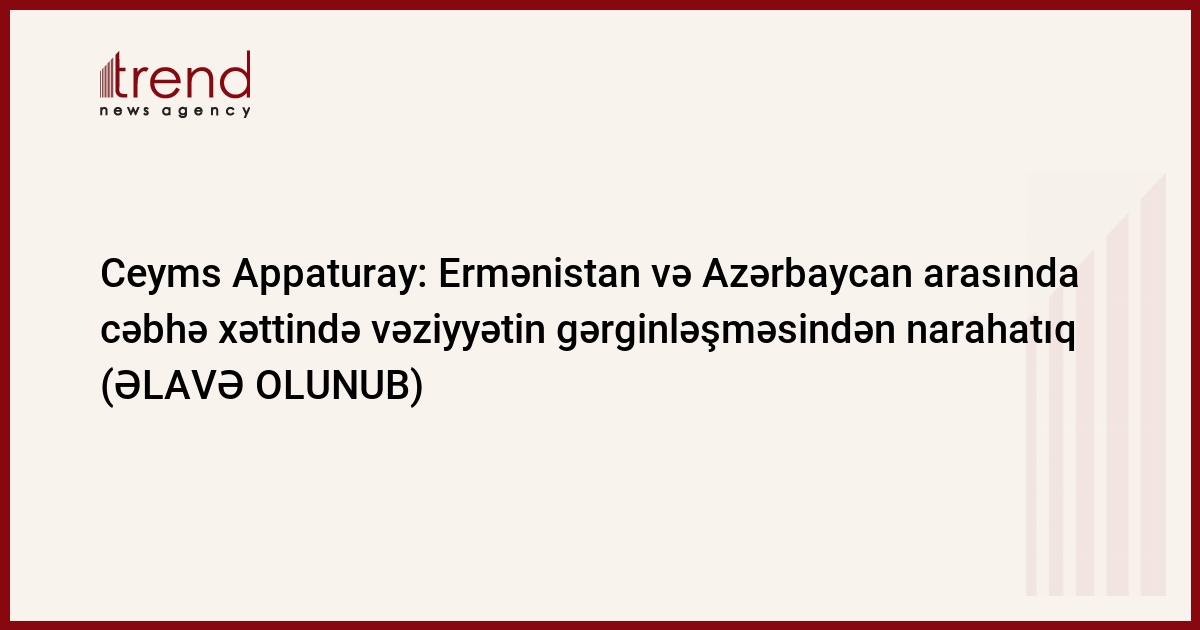 Ermənistan və Azərbaycan arasında son aylar cəbhə xəttində vəziyyətin gərginləşməsindən narahatıq. Trend-in məlumatına görə, bunu cümə axşamı Bakıda jurnalistlərə NATO baş katibinin Cənubi Qafqaz və Mərkəzi Asiya üzrə xüsusi nümayəndəsi Ceyms Appaturay deyib.