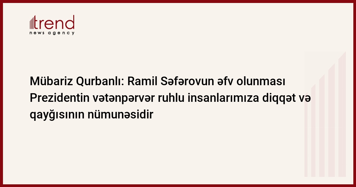 Azərbaycan Ordusunun zabiti Ramil Səfərovun Azərbaycan Prezidenti İlham Əliyevin sərəncamı ilə əfv olunması çox xoş bir hadisədir. Trend-in məlumatına görə, bunu Yeni Azərbaycan Partiyasının (YAP) rəsmi saytına açıqlamasında YAP icra katibinin müavini, Milli Məclisin deputatı Mübariz Qurbanlı deyib.