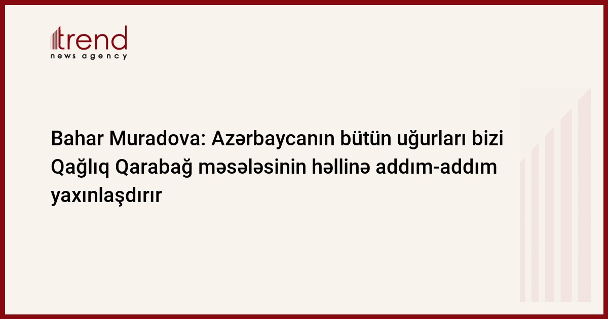 Bütün uğurlarımız bizi həlli mühüm və vacib olan Qağlıq Qarabağ məsələsinin həllinə addım-addım yaxınlaşdırır. Trend-in məlumatına görə, bunu hakim Yeni Azərbaycan Partiyasının rəsmi saytına müsahibəsində Milli Məclisin vitse-spikeri Bahar Muradova bildirib.