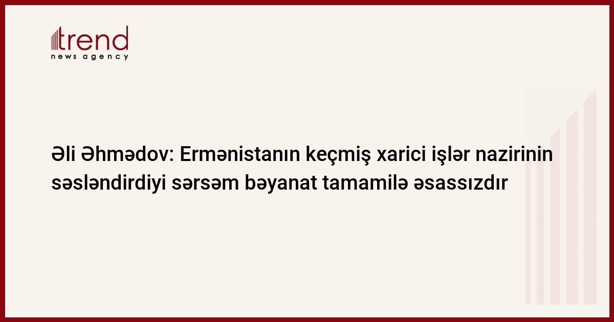 Ermənistanın keçmiş xarici işlər nazirinin səsləndirdiyi bəyanat reallığı əks etdirmir. Trend-in məlumatına görə, bunu cümə axşamı jurnalistlərə hakim Yeni Azərbaycan Partiyasının (YAP) sədr müavini, icra katibi Əli Əhmədov deyib.