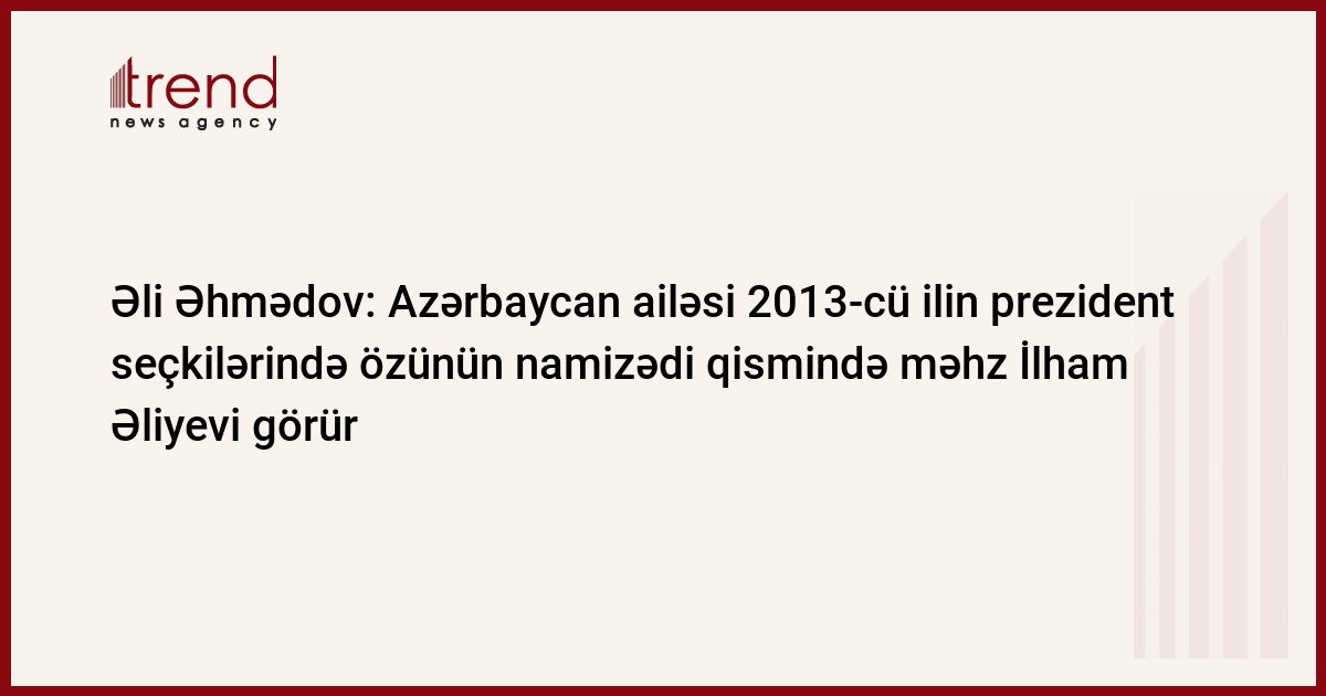 Azərbaycan xalqının prezident seçkiləri ilə bağlı təsəvvürlərinin əsasını təşkil edən ideya növbəti beş ildə də ölkəmizə İlham Əliyevin rəhbərlik etməsi ilə bilavasitə əlaqədardır. Trend-in məlumatına görə, bunu Yeni Azərbaycan Partiyasının (YAP) sədr müavini, icra katibi Əli Əhmədov ümummilli lider Heydər Əliyevin vəfatının ildönümü ilə bağlı YAP Xətai rayon şöbəsində keçirilən tədbirdə çıxışı zamanı deyib.