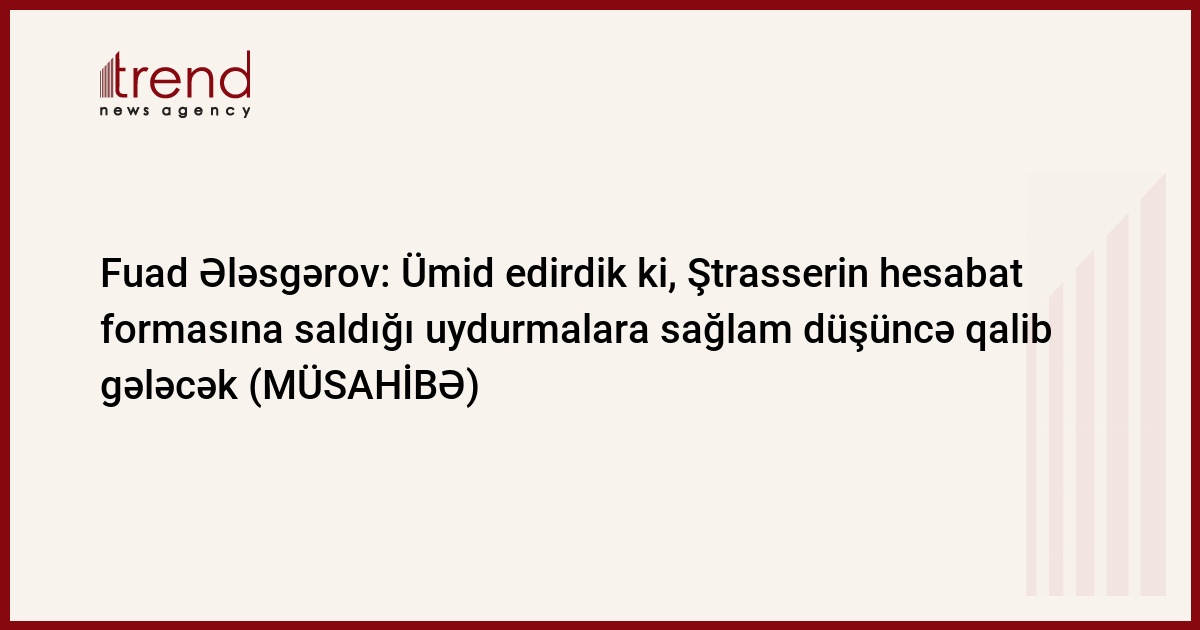 - Biz ümid edirdik ki, Ştrasserin hesabat formasına saldığı uydurmalara Assambleyada baxılan zaman sağlam düşüncə qalib gələcək. Çünki tamamilə aydın idi ki, məruzənin müəllifi Azərbaycana dair hesabatın AŞPA-nın müzakirəsinə çıxarılması üçün hər cür cəhd göstərmişdir. Bununla belə onu sənədin məzmunundan çox, həcmi maraqlandırırdı. Məruzəçinin ona verilmiş siyasi sifarişin yerinə yetirilməsi ilə bağlı tələskənliyi və məqsədyönlüyü açıq-aşkar görünürdü.