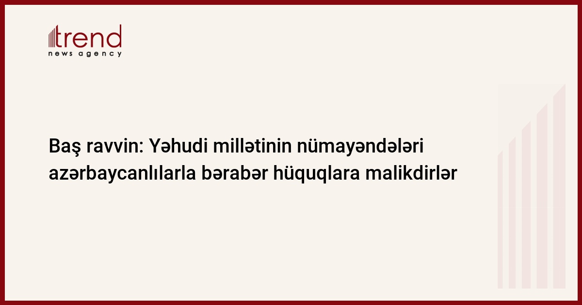 Azərbaycanda yaşayan yəhudi millətinin bütün nümayəndələri azərbaycanlılarla bərabər hüquqlara malikdirlər. Bu hüquqlar ölkə hakimiyyəti tərəfindən qorunur. Bu barədə Trend-ə açıqlamasında Avropa yəhudiləri icmasının baş ravvini Şneor Seqal bildirib.