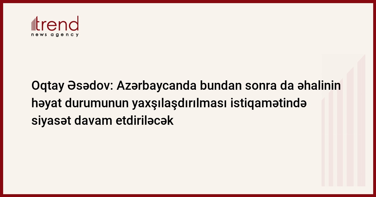 Spiker Oqtay Əsədov vurğulayıb ki, Azərbaycanda bundan sonra əhalinin sosial həyat durumunun yaxşılaşdırılması, qabaqcıl texnologiyaların tətbiqi, ərzaq təhlükəsizliyinin təmini, insan potensialından düzgün istifadə olunması istiqamətində siyasət davam etdiriləcək.