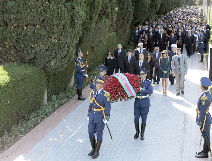 Ümummilli lider Heydər Əliyevin məzarının ziyarət edilməsi mərasimində Baş nazir Artur Rasizadə, Milli Məclisin sədri Oqtay Əsədov, Prezident Administrasiyasının rəhbəri Ramiz Mehdiyev, nazirlər, komitə və şirkət rəhbərləri, Milli Məclisin deputatları iştirak edirdilər.