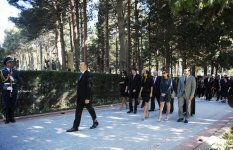 Sonra Prezident İlham Əliyev və ailə üzvləri oftalmoloq alim, akademik Zərifə xanım Əliyevanın, görkəmli dövlət xadimi Əziz Əliyevin və tanınmış həkim-alim Tamerlan Əliyevin məzarlarını ziyarət edərək üzərinə gül dəstələri qoydular.